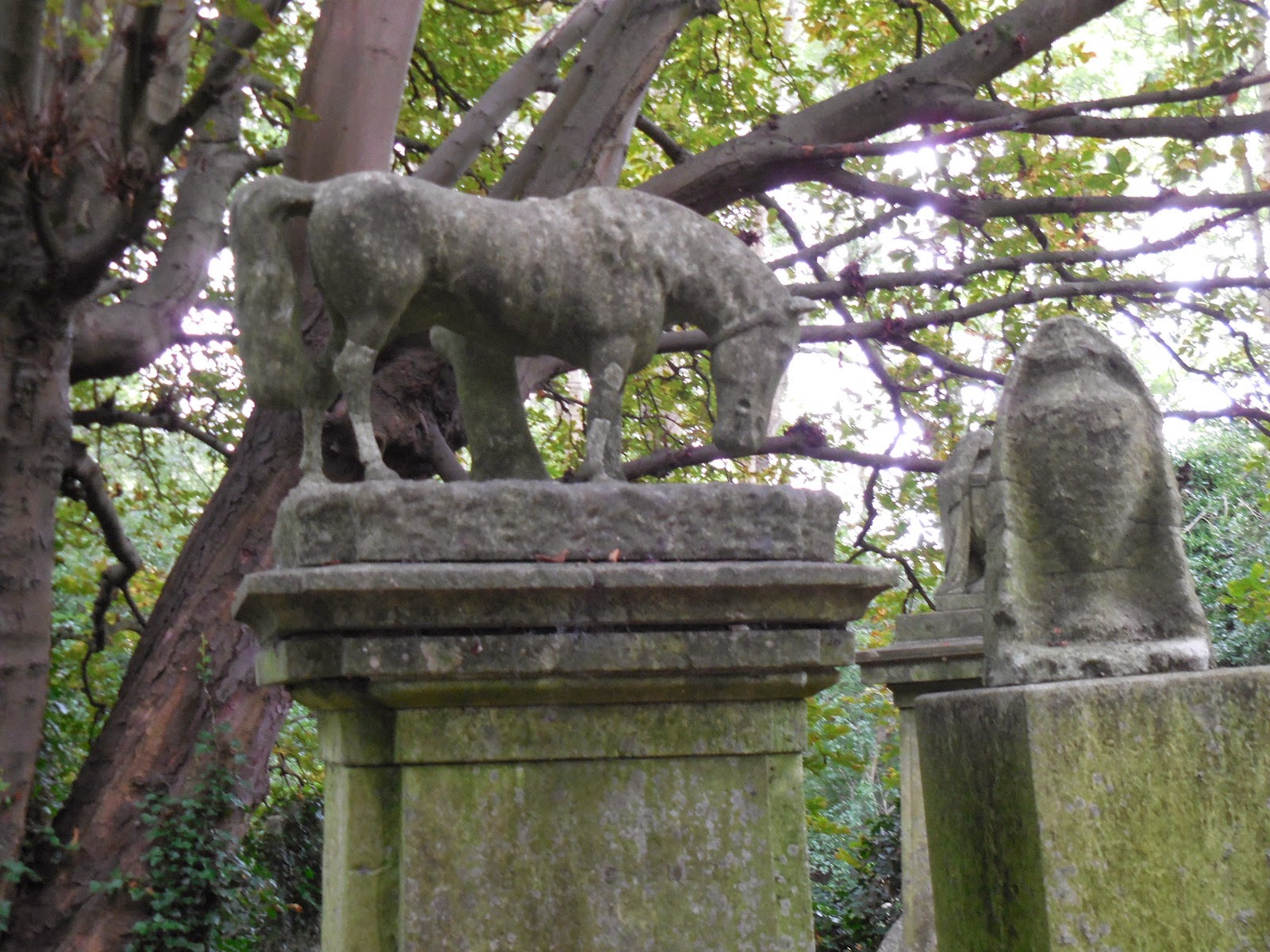 This horse is one of the numerous animals adorning gravesites.