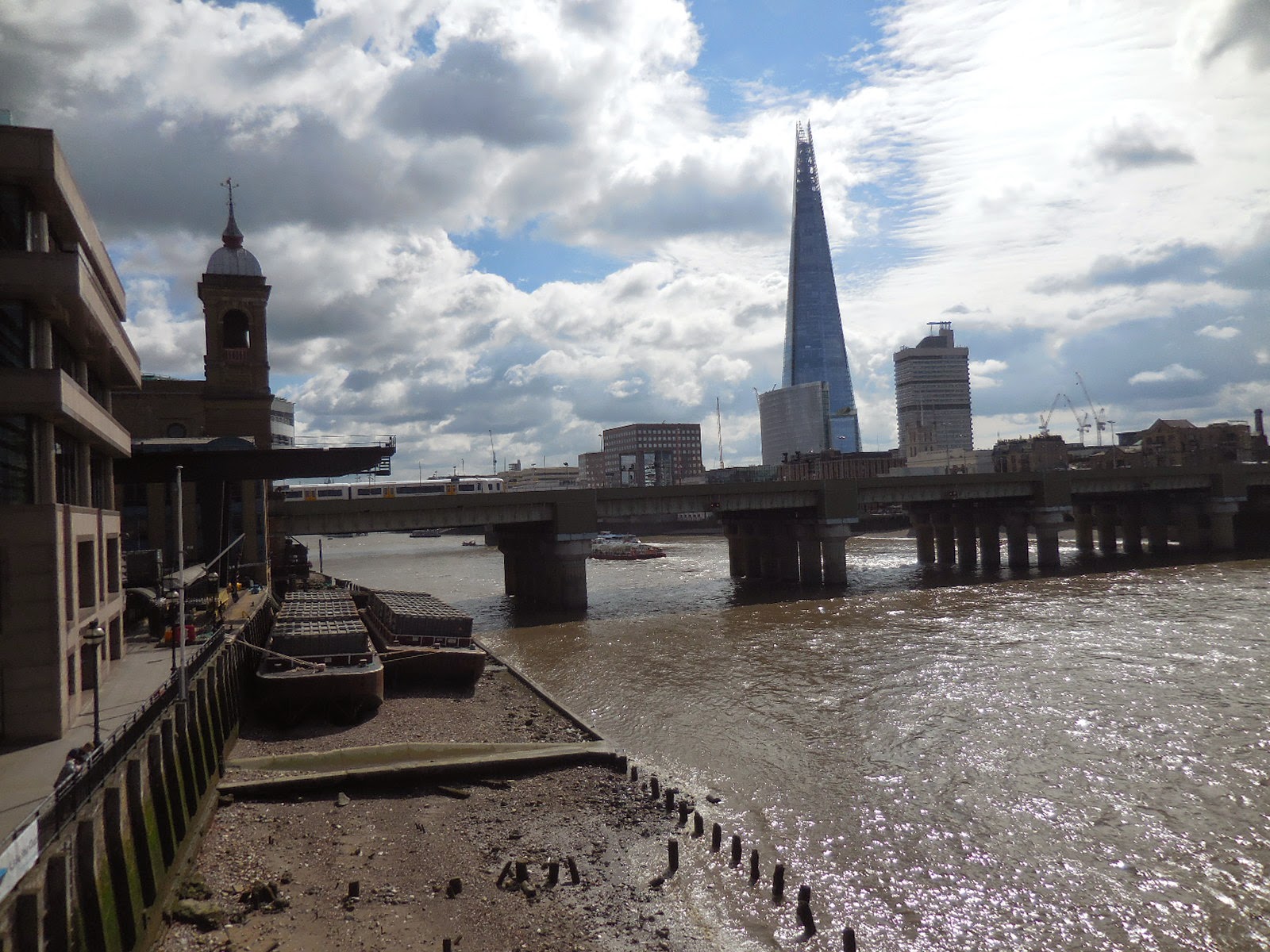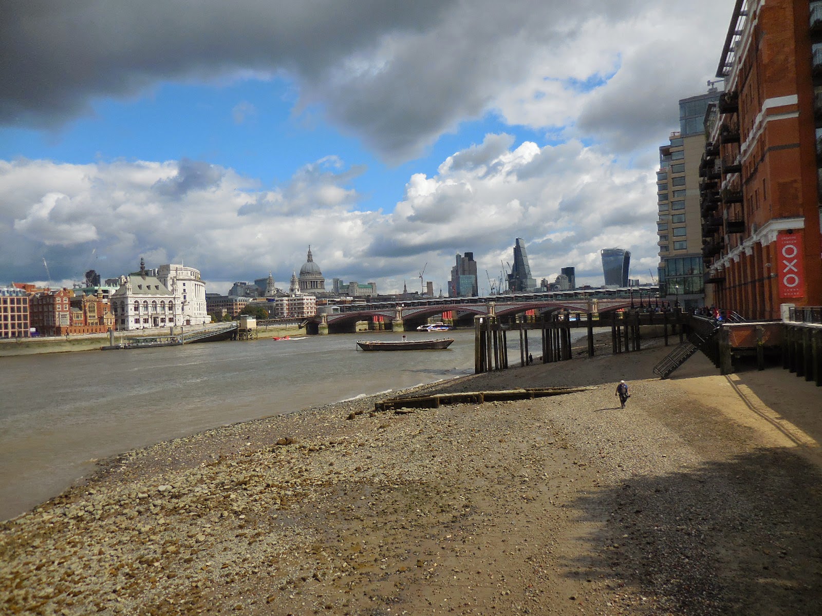 You'll see from the photos below that it was glorious London day, perfect weather for being outdoors. This is what the riverbank looked like when we were there.