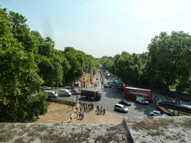 This picture shows the screen in relation to Apsley House; the Wellington is Arch off the picture to the right A few years ago, English Heritage took over the Wellington Arch and changed it from a small police into to a small gift shop with an exhibition space above. There is access to the viewing balcony at the top as well, all by elevator. Ed's sore foot appreciated that particularly!