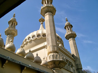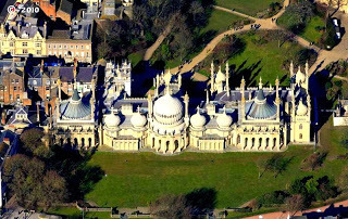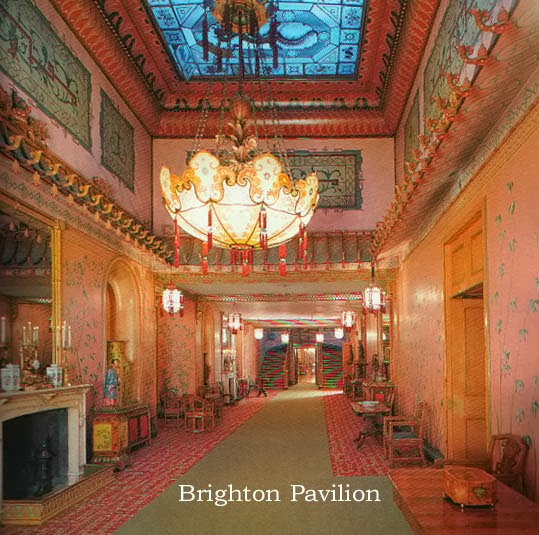 The Royal Pavilion, Brighton The Wellington Tour, planned by Kristine, Patty Suchy, and me, will visit the Pavilion on September 9, 2014. For the rest of the itinerary and all the Tour details, go to:http://wellingtontour.blogspot.com We'd love to have you join us for this and other intriguing sites. So what can one say about such a structure? In its earliest incarnation, it was a simple farmhouse in the fishing village of Brighthelmstone on the Sussex coast. In the late 18th century, the popularity of seaside spas was growing. Fashionable London came to drink the sea water and bathe in it as well. As soon as George, Prince of Wales, later Prince Regent and eventually George IV (1762-1830) came to stay, Brighton became a center of Society.