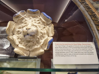 Coade Stone Lion Mask The rosette above came from the Classic Bridge at Chiswick, designed by James Wyatt in 1774; Coade Stone is artificial, often used by leading architects for statues and ornaments.