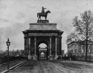 At the height of the Roman Empire, triumphal arches were built to commemorate great events. Think of Rome's Arch of Constantine, the Arch of Titus, and so on. The French started building one in 1806 to mark Napoleon's victory in the Battle of Austerlitz, but it remained unfinished for thirty years, now known as the Arc de Triomphe de l'Etoile in Paris. Not to be outdone, the Prince Regent, later King George IV, wanted to memorialize British victory over France..