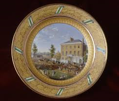 Apsley House on plate from the Saxon Service of Meissen porcelain, ca. 1818 There are several rooms of cases displaying all the gifts given to the Duke. Below, our conversation.