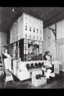 Queen Mary's Dollhouse was an inspiration of Princess Marie Louise (1872-1956), a granddaughter of Queen Victoria, who was a friend of renowned architect Sir Edwin Lutyens (1869-1944). She envisioned the dollhouse as a showcase for English craftsmen. Lutyens designed the Edwardian-style London House after 1920 and it was completed in 1924, furnished with exquisite miniatures at a scale of one-to-twelve. To visit the website, click here.