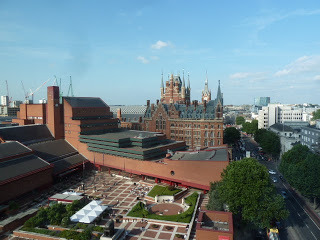 View from our Hotel in Euston Road We were at the London Pullman St. Pancras Hotel, just west of the British Library, with the St. Pancras Hotel/Station, recently refurbished in the background. We had two nights there, then went by train to Cambridge, then to Norfolk. Did I say we walked a lot? Uneven paving stones? Blisters?