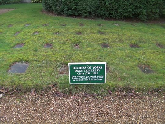 Originally, the cemetery was located near the old Grotto, where Greville bathed and where George IV held a dinner in celebration of Wellington's victory at Waterloo. The stones were moved closer to the house at some point and so were relatively easy to find as they are located right beside a gravel path.