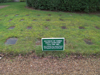 In an effort to get to the bottom of the indecipherable tablets I saw on the graves in the Duchess of York's pet cemetery at Oatland's Park, I've been going through my old notes and found a magazine article from the late 1800's that gives a fairly detailed report of the place. No wonder I thought I'd seen proper headstones on the graves - they are pictured in this same article from The Ludgate Monthly from 1897. I was not imagining things. The photo above shows what the pet cemetery looks like today. Follow this link for pictures of the original markers and the full story.