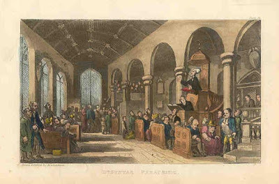 To the first church I will repair. And pay my solemn duties there.Thus as he spoke, a village chime Denoted it was service time: And soon a ruddy Curate came, To whom he gravely told his name, His rank and literary fame; And said, as he'd been us'd to teaching, He'd give him half an hour's preaching. This was accepted with a smile. And they both strutted up the aisle;When, in due time, and with due grace, Syntax display'd his preaching face. And in grave tones, though somewhat hoarse,He gave the following discourse…