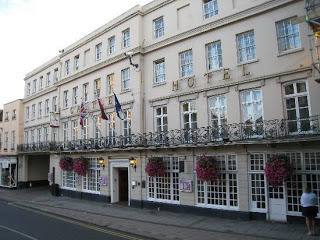 A few more steps brought us to the Castle Hotel, which is just lovely. We were given a very large room overlooking the High Street. I'm sorry I didn't think to take a photo of the room before Hubby and I disgorged our belongings over every flat surface, but you get the idea.