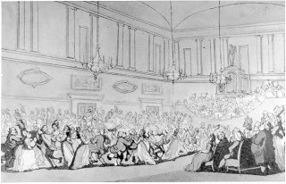 And the Tea Room was, naturally, where the fashionable went to take tea. Here is Rowlandson's print of the Room -
