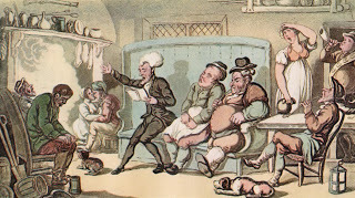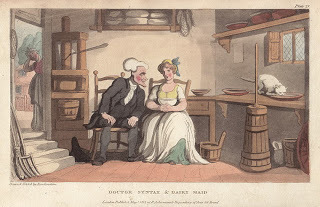 Just three sections to go before we come to the end of Dr. Syntax's first set of adventures. As we have followed the good reverend for the last eight or nine months, we have found him continually frustrated by his inability to find the picturesque...not only does he have extended misadventures, the poor man is confronted with one jolly scene after another, few of them fulfilling the strictures of Dr. Gilpin. It's all meant as a satire on the early nineteenth century's obsession with wild beauty...sometimes referred to as the Romantic Movement.