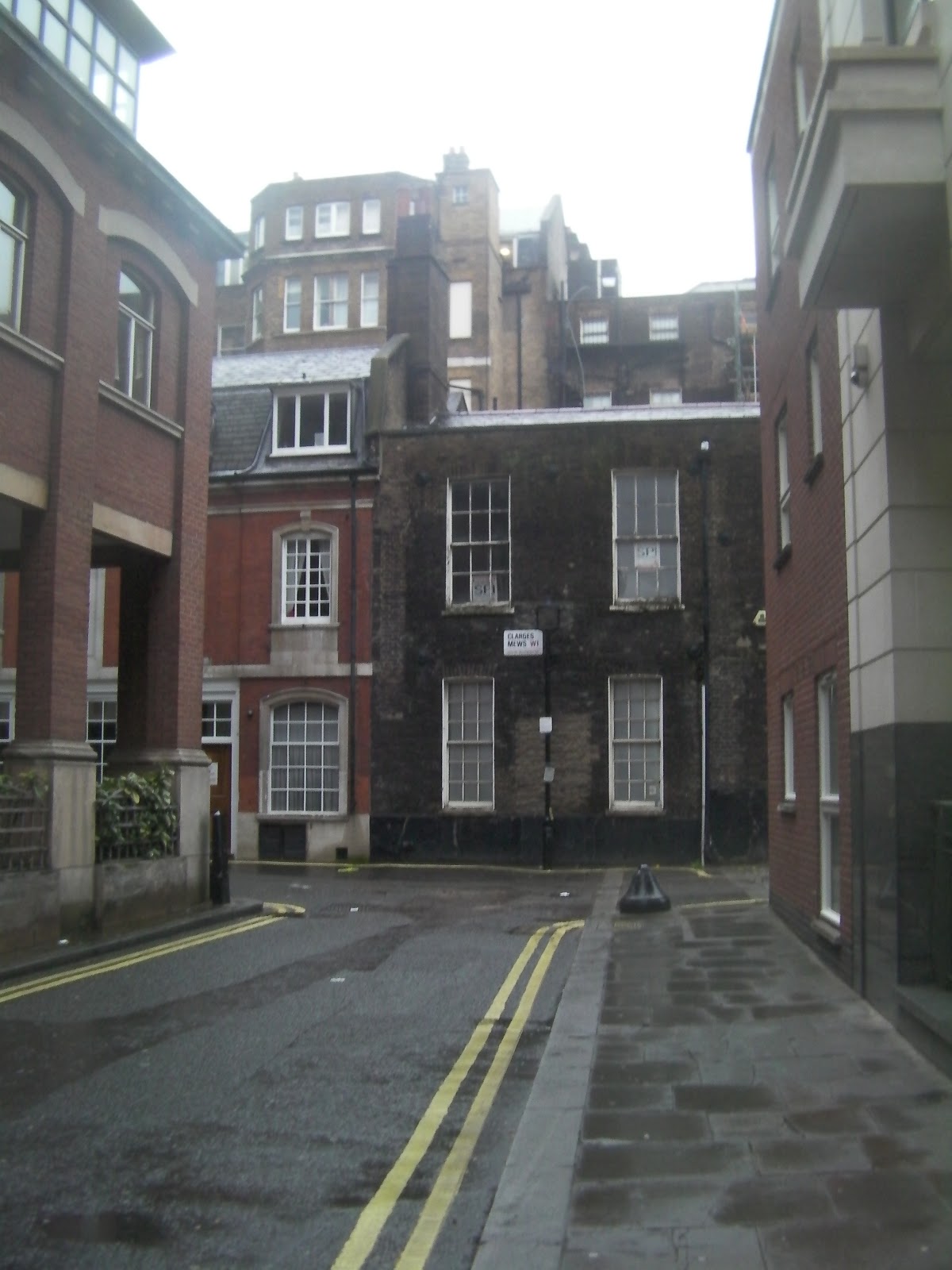 So I walked Hubby down the alley that leads to Piccadilly, where we came out just beside the In and Out Club, now almost obscured by sidings.