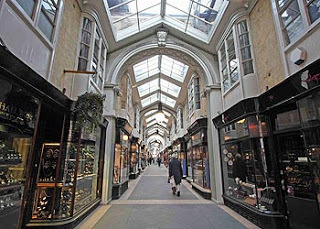 Alas, this was not to be . . . . after ordering my cream tea and pulling out a book to read, I could not help but overhear the conversation of the two gentlemen sitting next to me. A pair of Cockneys who were, obviously, brothers, it seems they chose Richoux in which to meet in order to catch up and regale one another with their opinions on various subjects, including inflation - "Old dad's overcoat would cost you six thousand pounds to have made up today." One of these men took himself to be a world traveler, who unfortunately made easy with his opinions on various places and people - "Switzerland's not bad, especially Zurich, but the Jews are such dodgy geezers." Now, I typically don't go in for butting into other people's conversations, and I refrained this time, but I did treat the pair to a raised eyebrow. Not that it mattered a wit to either of them, for the same brother went on, "Of course the Germans aren't like us, but they're awright." I asked for the check and left before he could continue on to the Japanese, the Belgians, the French or the Armenians. Gas bag . . . . . . I decided to head back to the hotel, making a pit stop in the Burlington Arcade in order window shop and appreciate the architecture.