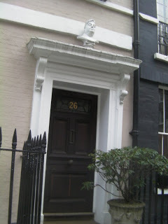 You have to allow that the doorway at No. 26 is a real pip, complete with a plaster bust above the entranceway. Neither Hibbert nor Google have enlightened me thus far, so if anyone knows more about this house, please let me know. Let us proceed . . . . .