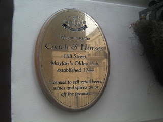 So Hubby and I venture outside and make it all of a few hundred feet up to Curzon Street, where Hubby spots a Caffe Nero on the corner. I can take a hint as well as the next chap, so inside we go and order an Americano (Hubby) and a mocha (moi). We take them outside and sit at one of the little cafe tables on the pavement. We sip. We light up. And I begin to grin like a Cheshire Cat.