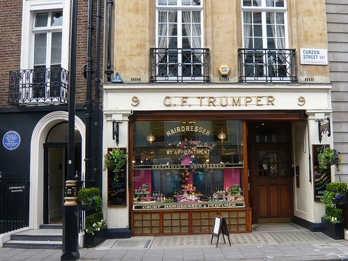 The Church of Christ the Scientist is just across Curzon Street, and beside that are C.F. Trumper, Men's Hairdressers