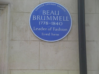 And midway down Chesterfield Street, on the left, we find Brummell's house at No. 4. Let us linger here a moment in the drizzle and contemplate this particular doorway, shall we? Just imagine the visitors who must have come and gone through that door, with its elegant side and fan lights. Visitors aside, just imagine Brummell himself coming and going through that door. Oh, to have the mystery of what he looked like solved at long last! Did he look like this . . . . .