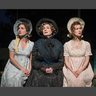 Nevertheless, I liked it very much, as did the near-capacity audience for the performance I attended. The Rep, by the way, broke all their attendance records with the adaptation of Pride and Prejudice a few years ago. Healy's version of S and S was remarkably true to the novel although some obvious cuts were necessary. The sets were effective and the costumes -- well, since I was sitting up close, I could not miss the zippers on the gowns and the less than well-tailored men's jackets. Had I been farther back, I probably would have loved them for the "look" was excellent. Suspend disbelief, I tell myself.