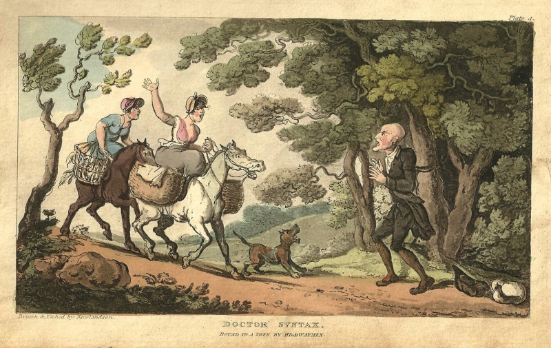 We left Dr. Syntax in a dire situation, tied to a tree, robbed of his money and his horse Grizzle;