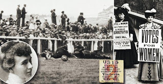 A little over a year ago, we posted a blog about Emily Davison, the suffragette who was killed by the King's horse at the 1913 Derby. There has always been speculation as to whether Davison's death was a terrible accident or a planned suicide. You can find our original post here. Recently, new evidence about the incident has come to light and there was an article in the Daily Mail which raises new questions and proposes further theories. We thought you might be interested in these developments and so offer a link to the article here. What is perhaps most surprising is that the entire incident was caught on film, which can be viewed at the end of the article.