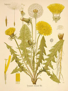Dandelion: This is a well known perennial inhabitant of our meadows, pastures, and gardens, generally despised as a troublesome weed; and flowering from April, till late in autumn. The root is spindle-shaped, white and fleshy within, and covered externally with a brown epidermis...