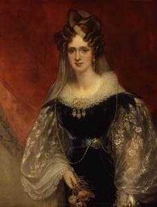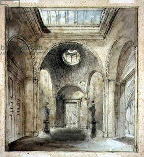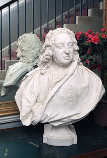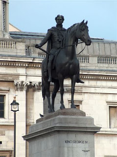 As so often in Georgian-era portraits, the subject is wearing a Roman-style toga. And without being unrealistic, somehow the expression on the King's face seems to me quite representative of his character. Unlike the overly flattering pictures by others, particularly Sir Thomas Lawrence, this Chantrey bust gives us a hint of the dichotomy in George IV: one the one hand selfish, narcissistic and extravagant -- but on the other hand, a great builder and connoisseur of the arts.