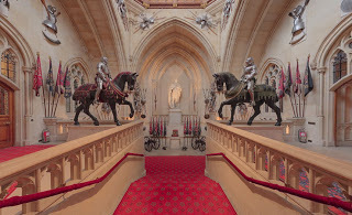 George IV and the royal family were frequent patrons of Chantrey. His bronze state of Geogbe IV on horseback can be found in Trafalgar Square, as above. Below is George IV in the center of the Grand Vestibule of Windsor Castle's State Rooms, flanked by mounted knights.