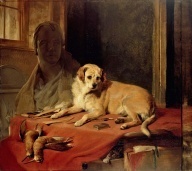 This charming portrait of Mustard, Chantrey's terrier, and his sculpting tools was presented to Queen Victoria by Lady Chantrey in 1842. According to the description in the Royal Collection, "The painting was commissioned in April 1835 by Chantrey, who sent Landseer a humorous letter, supposedly from Mustard. It was exhibited at the Royal Academy in 1836 when it was admired by Queen Victoria." After Chantrey's death, his widow presented the painting to the Queen.
