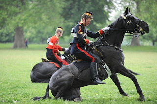As we recently ran a post about a Household Calvary horse named Sefton, we thought it would be appropriate to look into the Duke of Wellington's connection to the Household Calvary, a term used to describe the cavalry of the Household Division, the most elite senior military groupings or those military groupings that provide functions associated directly with the Royal Family. The British Household Cavalry is made up of two regiments of the British armed forces, the Life Guards and the Blues and Royals (Royal Horse Guards and 1st Dragoons). These regiments are divided between the Armoured Regiment stationed at Combermere Barracks in Windsor and the Household Calvary stationed at Knightsbridge Barracks, London.