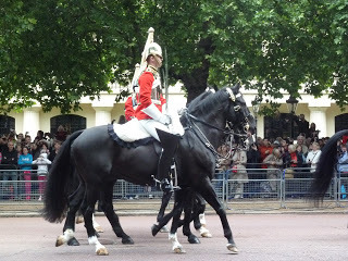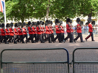 Last June (2011), I watched the Queen and Royal Family, accompanied by a FEW of her Guards, parade from Buckingham Palace along the Mall toward the parade ground at Horse Guards for the annual Trooping the Colour. See this blog of July 30, 2011, for more.