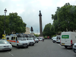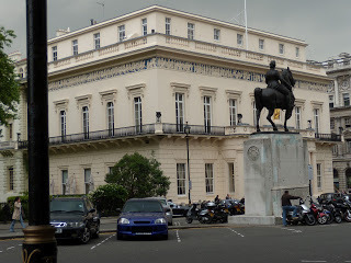 While the Queen was reviewing her troops, I took the opportunity to wander around St. James and snap more pictures. I walked up the steps from the Mall between the two large buildings that comprise Carlton House Terrace, once the site of the Prince Regent's fantastic Carlton House, demolished in 1825.