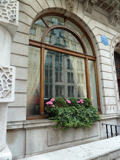 Just a few steps farther is the handsome 79 Pall Mall with its lovely window set off by pink geraniums looking out at the busy street.