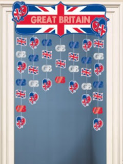Or perhaps not . . . . but do have some door curtains handy for guests to walk through. Nothing says "party" like getting one's hair caught up in bits of string and tatty paper Union Jacks.