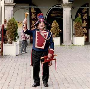 Surpisingly, further research uncovered the fact that the office of Town Crier is alive and well, on both sides of the pond. As Wikipedia informs us: "Many local councils in England and Wales reinstated the post of town crier from the mid 1990s onwards (e.g. Chester). Many are honorary appointments or employed part time by the council. As of October 2010, there were 144 towns in England and Wales with town criers registered with the Ancient and Honourable Guild of Town Criers. They mainly perform ceremonial duties at civic functions. Local councils with a paid town crier often make them available for charity events.