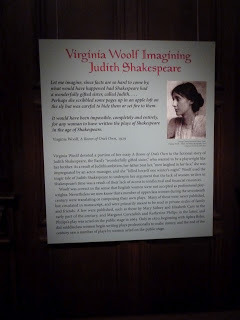 The exhibition began with a famous passage from Virginia Woolf's 1929 volume A Room of One's Own: "(W)hat would have happened had Shakespeare had a wonderfully gifted sister, called Judith, let us say...it needs little skill in psychology to be sure that a highly gifted girl who had tried to use her gift for poetry would have been so thwarted and hindered...that she must have lost her health and sanity."