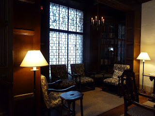 Central to the Folger's mission is scholarship. Imagine how privileged one would be to receive a reader's card and be able to conduct research here in the Reading Room. When I visited, we were allowed only a peek at the premises, which are reserved for serious studies. At the end of the room is the immense window depicting the Seven Ages of Man (from As You Like It).