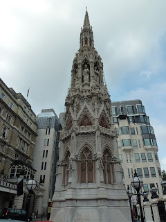 Continuing eastward I came to Somerset House, a building with an interesting history and a continuing role in contemporary London. In the courtyard below was an installation by the celebrated Chinese Artist Ai Weiwei, who was threatened with imprisonment in his home country for his dissident activities. Hard to distinguish in the pictures is Circle of Animals/Zodiac Heads which has also been shown in New York City. The installation recreates 18th century figures near Beijing which were damaged by the British and French during the Opium Wars. Ai's message accompanies the artwork: "Without freedom of speech there is no modern world, just a barbaric one."