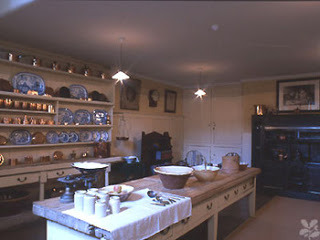 Harewood House, above, in Yorkshire also boasts shelf after shelf of bright copper utensils. This kitchen, too, is often the site of special events which include tasty treats. Harewood's excellent website is here.