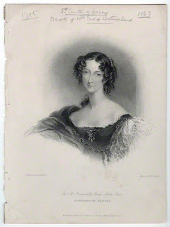 Her ladyship was the eldest and only surviving child of John, 10th Earl of Westmorland, by Anne, only daughter and heir of Mr. Robert Child. She was born March 4, 1785 and in May 1804 she married George, Viscount Villiers, who in the following year succeeded his father the 5th Earl of Jersey, and by whom she had a family of four sons and three daughters. Her eldest son, George Augustus Frederick, died three weeks after the death of his father in 1859; and was the father of Victor, 7th Earl; Augustus John died at Rome in 1847; Frederick married to Lady Elizabeth, daughter of the 8th Earl of Athlonel (title extinct); Francis John died in May 1862; Lady Sarah, married to Prince Nicholas Esterhazy, son of his Excellency the late Prince, many years an ambassador to the Court of St. James's, from Austria, died at Torquay in November 1853; Lady Clementia died unmarried in December 1858, and Lady Adela, wife of Lieut. Colonel Charles Ibbetson, who died suddenly in September 1860.