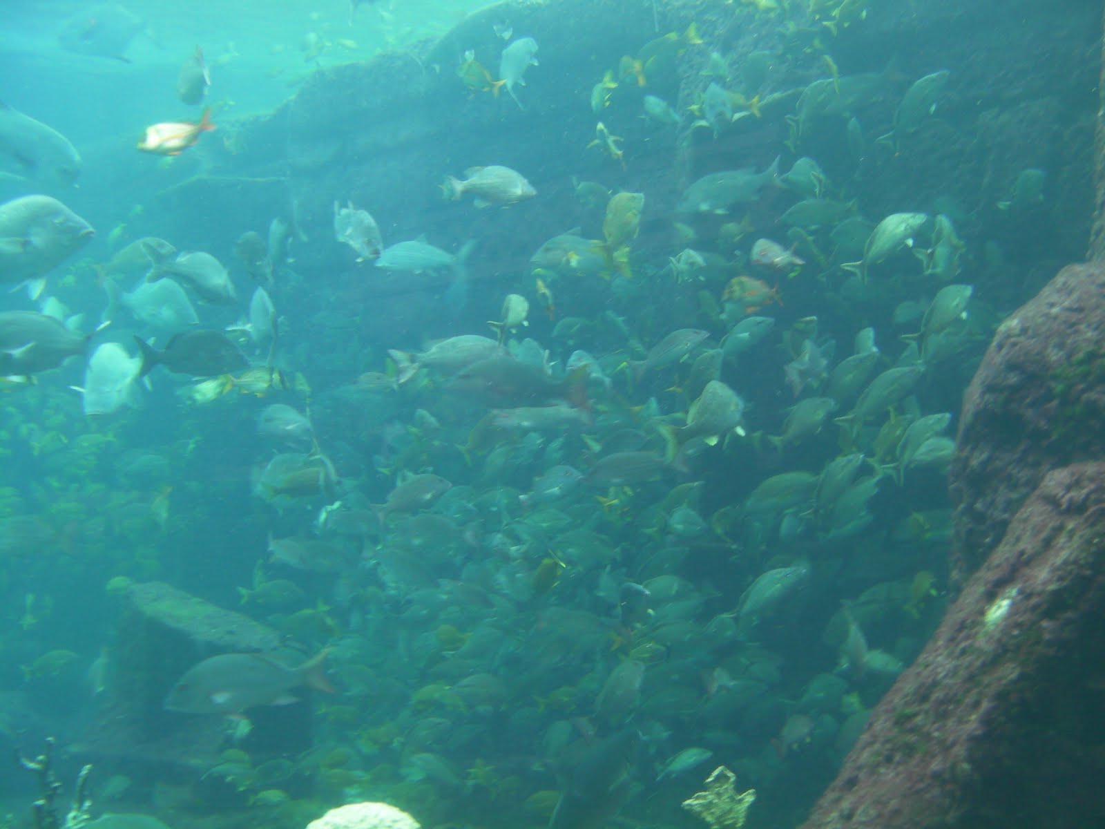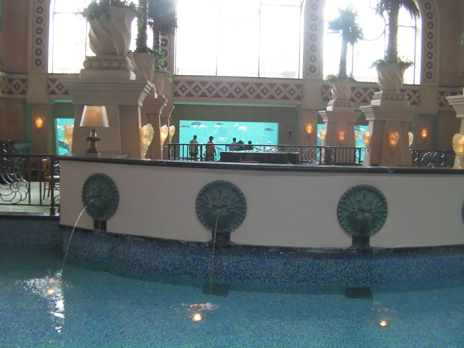 The two million gallon tank holds sharks, manta rays, eels, grouper and a variety of other sea life and can be seen through windows in the underwater walkway that meanders through the resort.