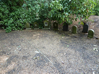 The Garden brochure says, "The garden has been largely maintained in its original formal 18th-century layout, with a number of large, plain expanses of lawn, intersected by gravel pathways." Flowers and hedges were restricted to the boundaries, but at the eastern end, there is a shrubbery with a woodland path where I found the pet cemetery.