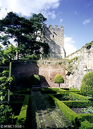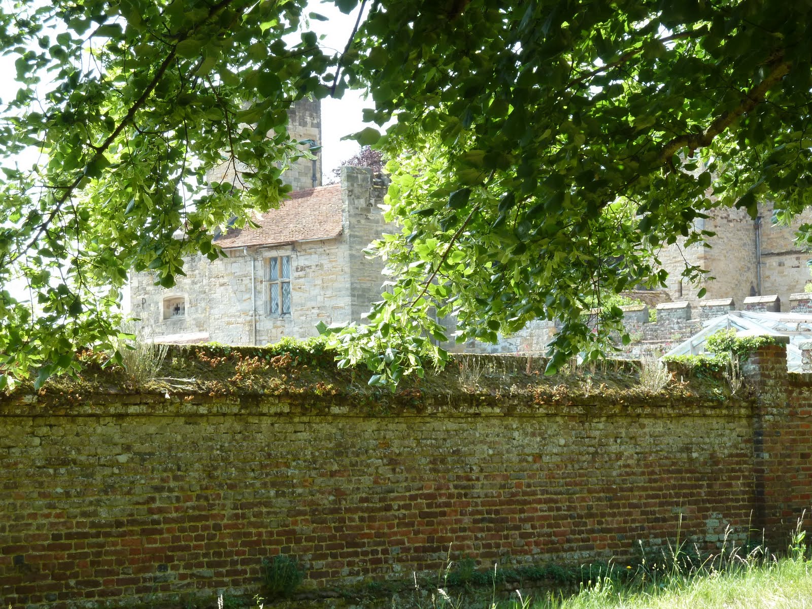 The gardens are rife with rambling, oh-so-fragrant old-fashioned roses and those old walls are draped with wisteria. (The wisteria is also trained over a stunning number of trellises, making quite a beautiful sight.) There's a clean, clear pond nestled near the Great Tower in which all sorts of tiny swimming wildlife like newts and tadpoles can be seen and enjoyed. Children particularly enjoy the tower and the pond and threading their way through a modern garden maze (commissioned in 1981 in honor of Archbishop Runcie), and under the wisteria trellises. There's a 19th century icehouse and the faint foundations of medieval gatehouses and other long-gone walls can be seen traced on the earth.