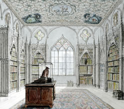 Above, the library in 2011; below, the library as Walpole enjoyed it.