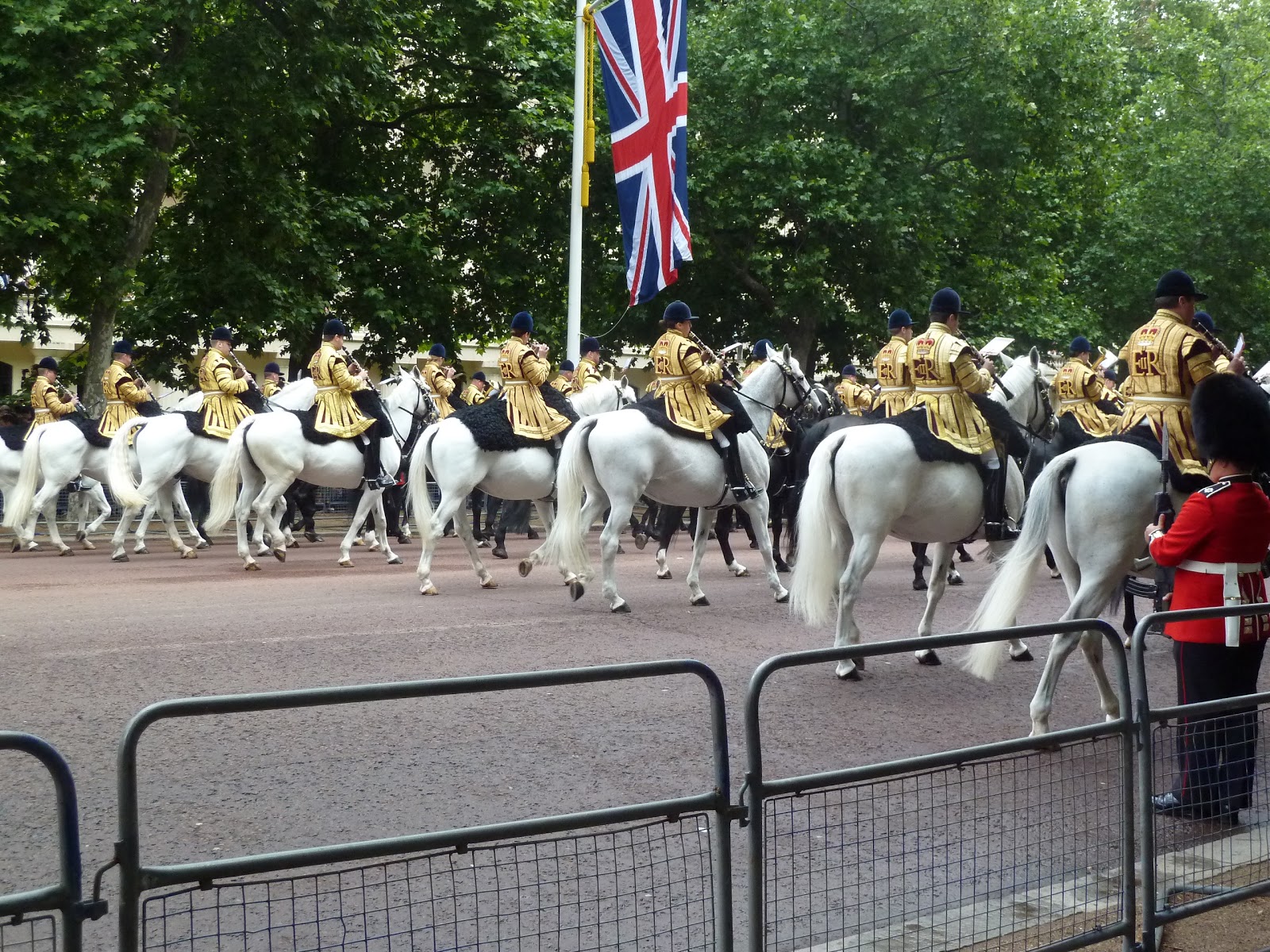 Finally, the Blues and Royals, in their blue tunics with red plumes, part of the Household Cavalry.