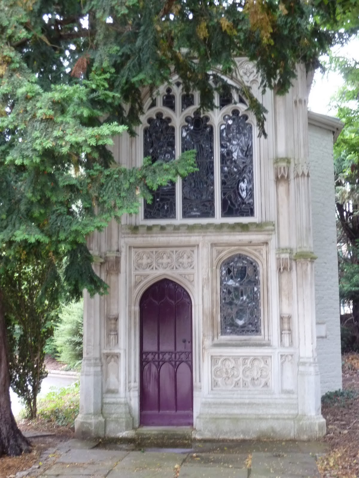 We searched for a while before a kind St. Mary's faculty member directed us to the chapel, now hidden beyond a car park. The design is based on the tomb of Edmund Audley, bishop of Salisbury in the Cathedral there.