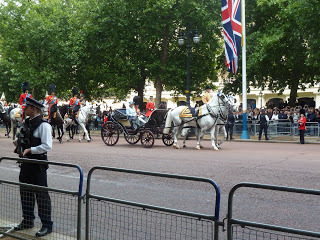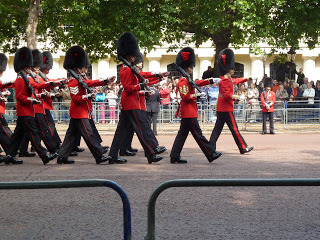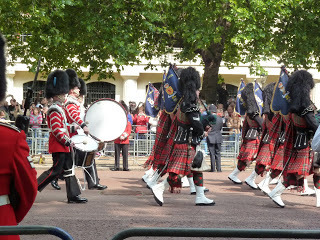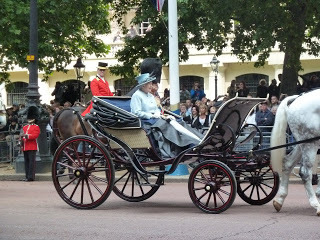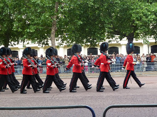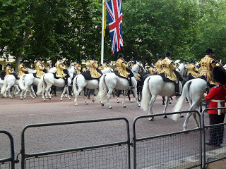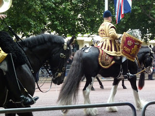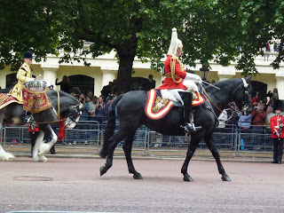 Trooping the Colour is held each June in celebration of the Queen's birthday (her actual birthday is April 21) and is a well-loved pageant. On Saturday, June 11, 2011, I could not resist going to the Mall to watch the procession of troops, bands, cavalry and royal carriages from Buckingham Palace to Horse Guards and back.