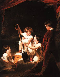 1807, were the grandchildren of John Julius Angerstein, above. The choice of pose is unusual in that wealthy children of privileged families are rarely portrayed with shovel and broom. The catalogue essay speculates that the elder Angerstein's philanthropic interest in children would promote, "the hoped-for future for children...the right to play outdoors and enjoy autonomy, and to influence one another through action and word. If a child sweeps as young John Julius Angerstein does, he should do so for enjoyment. In this way the children embody the promise of philanthropy for future generations."