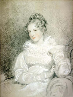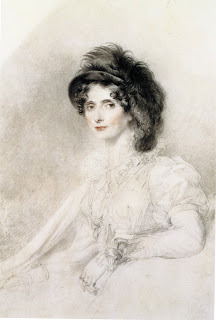 Several years ago, I stayed at the National Trust Hotel that is part of Ickworth, an estate in Suffolk, built by the Earl Bishop, Frederick Hervey (1730-1803), 4th Earl of Bristol and Bishop of Derry (see our post of 3/9/11). He built his remarkable house in the last decades of the 18th century. One of his daughters was Lady Elizabeth Hervey (1757-1824), who married John Foster in 1776. After having two sons with Foster, Bess left him and in 1782 became the close friend and confidante of Georgiana, Duchess of Devonshire. She enjoyed a rather warm relationship with William Cavendish (1748-1811), 5th Duke of Devonshire, as well and bore the duke two children who were raised with the three legitimate Cavendish children. Speculating on the precise nature of this menage a trois tickles our imagination. After Georgiana died in 1806, Lady Elizabeth became the 5th duke's second wife in 1809. He did not survive long, dying in 1811, but she lived on as the Duchess of Devonshire until 1824. If she indeed resembled this portrait drawn by Lawrence when she was age 63 or so, one might understand what kind of charisma the lady had.