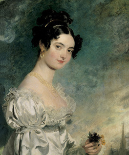 (?1797-1872 ) was painted in Vienna in 1819 and exhibited at the RA the next year. Observers called attention to the highlights of her pearl earrings and gold headband as perfect compliments to her beauty. Note also the excellence of the white satin. The catalogue contends she had been courted by Lord Granville Leveson-Gower but in 1821 she married an Austrian, Karl Graf von Clam-Martinics.