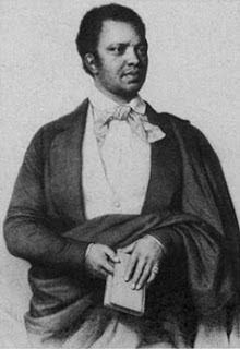 Born in New York City, Aldridge moved to England in the 1820's and studied acting. Despite setbacks early in his career in London due to racism, he became famous across Europe for his leading roles in Shakespearean plays including King Lear, Macbeth and Othello (pictured). He returned from his European tours so loaded with honor even the London West End stage could no longer exclude him and he finally played the famed Lyceum. In 1858, Aldridge became the first actor to be knighted when he was bestowed the Royal Ernestinischen House Order by Duke Bernhard of Saxe-Meiningen (now part of Germany) becoming Chevalier Ira Aldridge, Knight of Saxony.